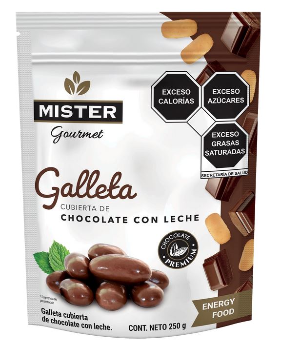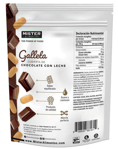Galletas cubierta de chocolate con leche en paquete de 250 g.